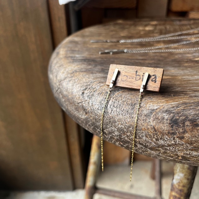 ご覧いただきありがとうございます。 2mm角の真鍮棒に径2mmのシルバーボールをロウ付けしました。 そして、角棒の先にぶら下がったチェーンは、ゆらゆら揺れて、小さなピアスでも存在感が増します。 ショートヘアの方は勿論、ロングヘアの方でもチェーンが髪の中で見え隠れして可愛いです。 ピアスポストは銀材で溶接してありますので、無理な力がかからない限り、外れてしまうことはありません。 ◆真鍮サイズ・・・2mm角、長さ約1.3cm シルバーボール・・・径2mm チェーンの長さ・・・約7cm ◆素材・・・真鍮、925sv(球、キャッチ、ポスト) 金メッキ(チェーン) ※在庫がない場合があります。その際は新たに制作いたします。 ▶︎お買い上げいただく前に必ずこちらをお読みください◀︎ こちらの商品は全てハンドメイドによるものです。ひとつひとつ丁寧に作っていますが既製品ではないので、多少の歪み、ずれなどはご了承ください。 画像の色味はなるべく実際の色を出せるように撮影しておりますが、照明のあたり方などにより実物と若干の 誤差はあります。
