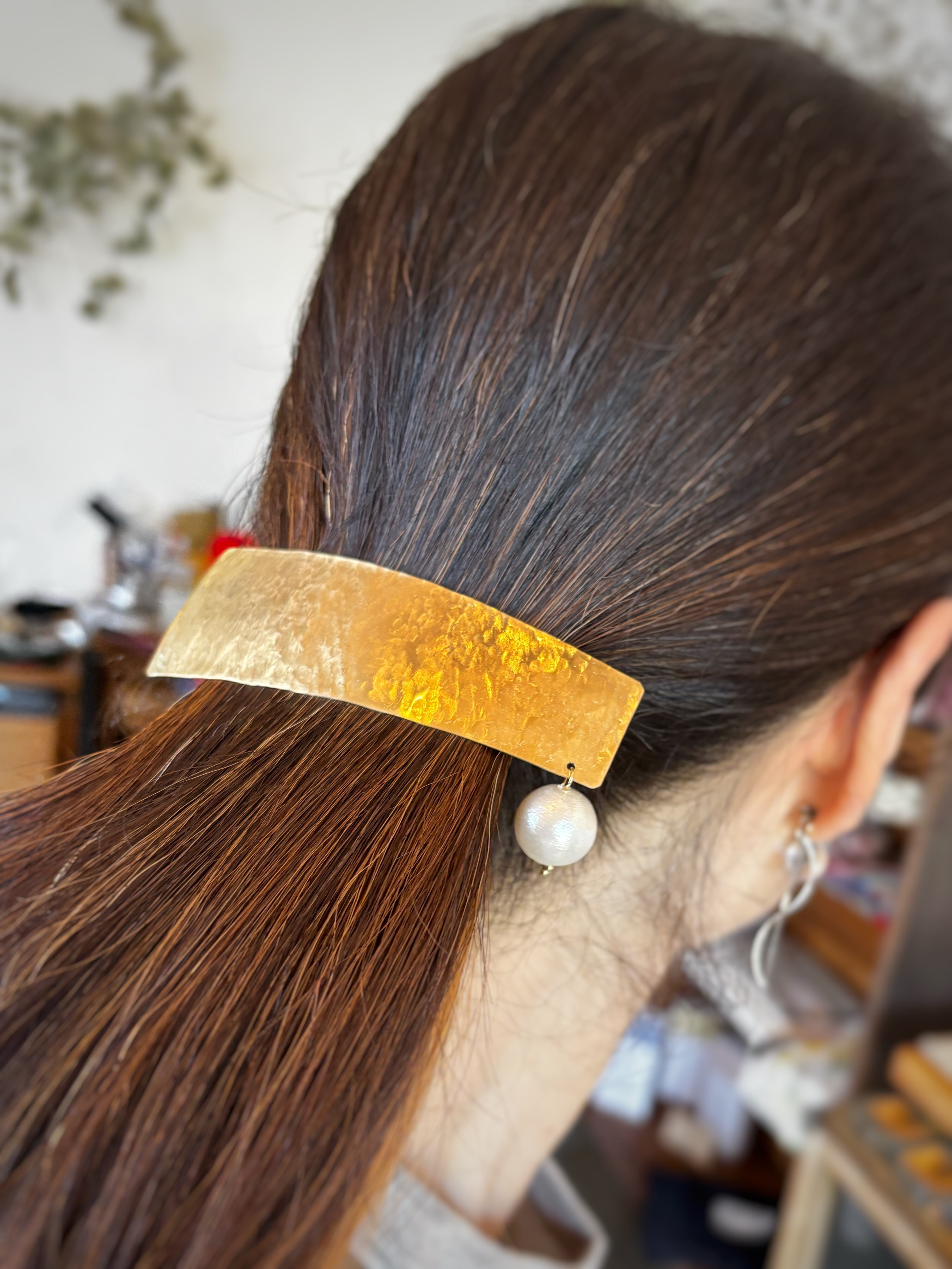 真鍮バレッタは、シンプルながらも存在感のあるヘアアクセサリーです。