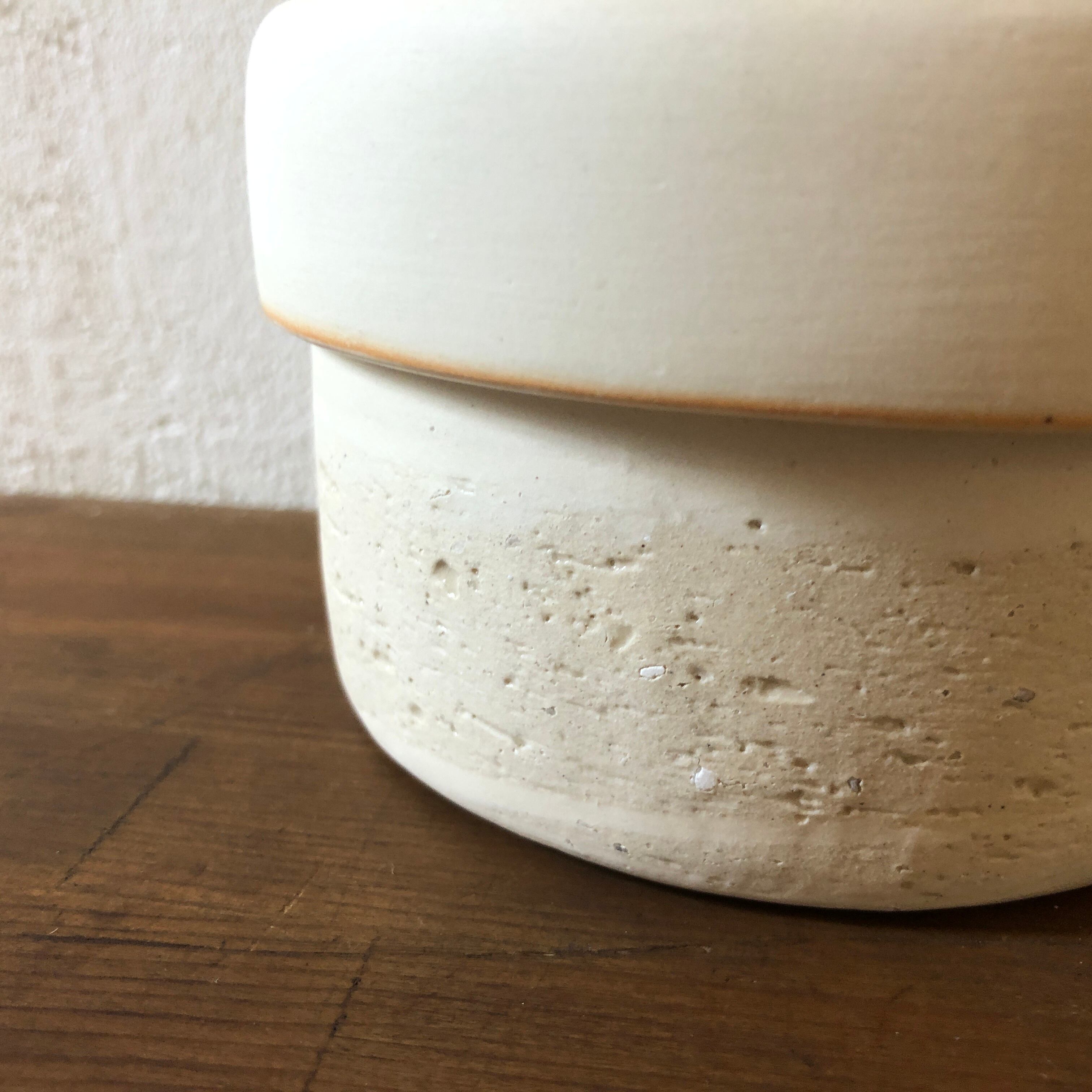 練り込みという技法で製作された器です。信楽や瀬戸の土を使い、ペダルの轆轤(ろくろ)で一つひとつ作ります。