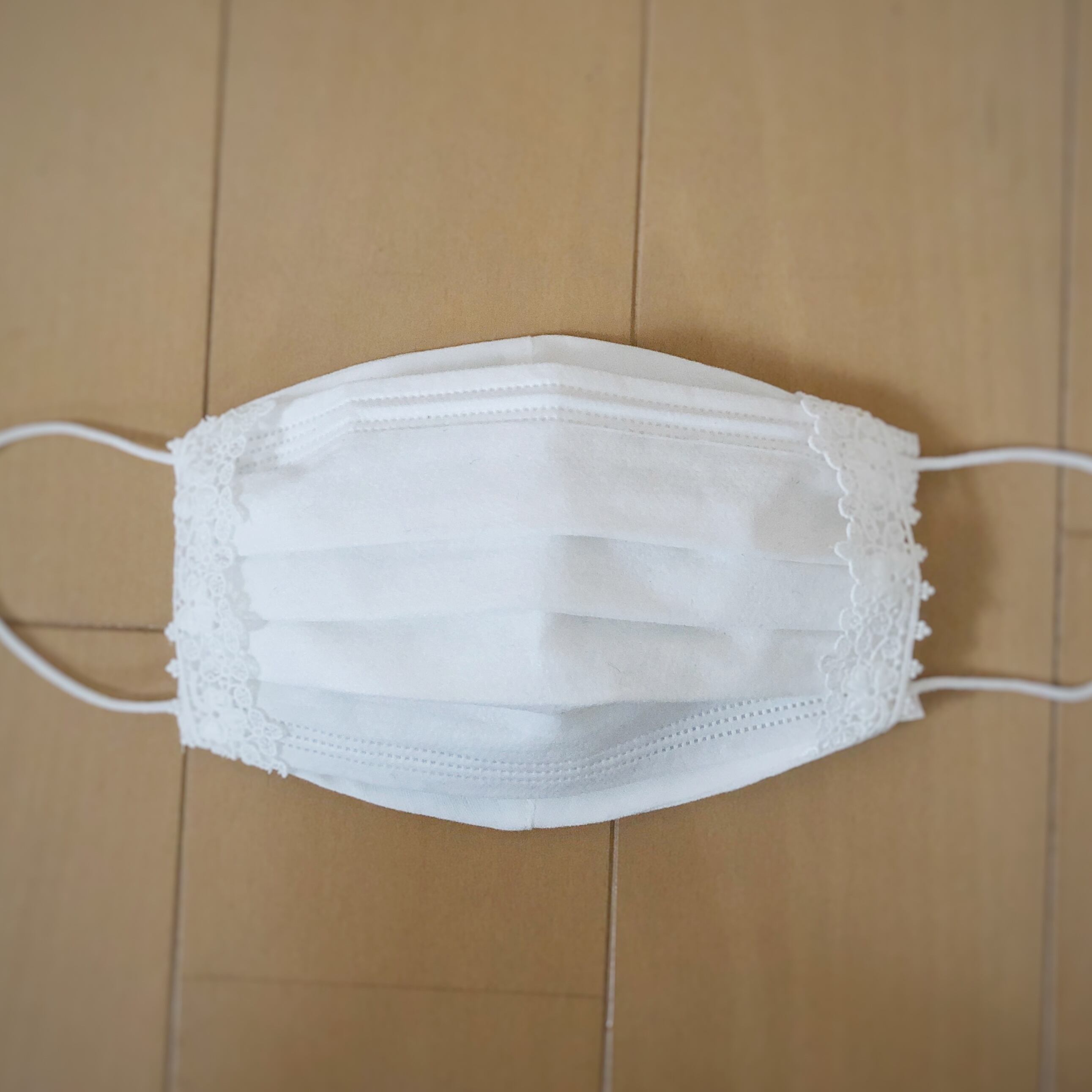 色は白のみ。いろんな色を試しましたが不織布の色に合わせたシンプルな白色がベストという個人的な結論に達しました。でも両サイドはレーステープで可愛らしくしてみました^_^