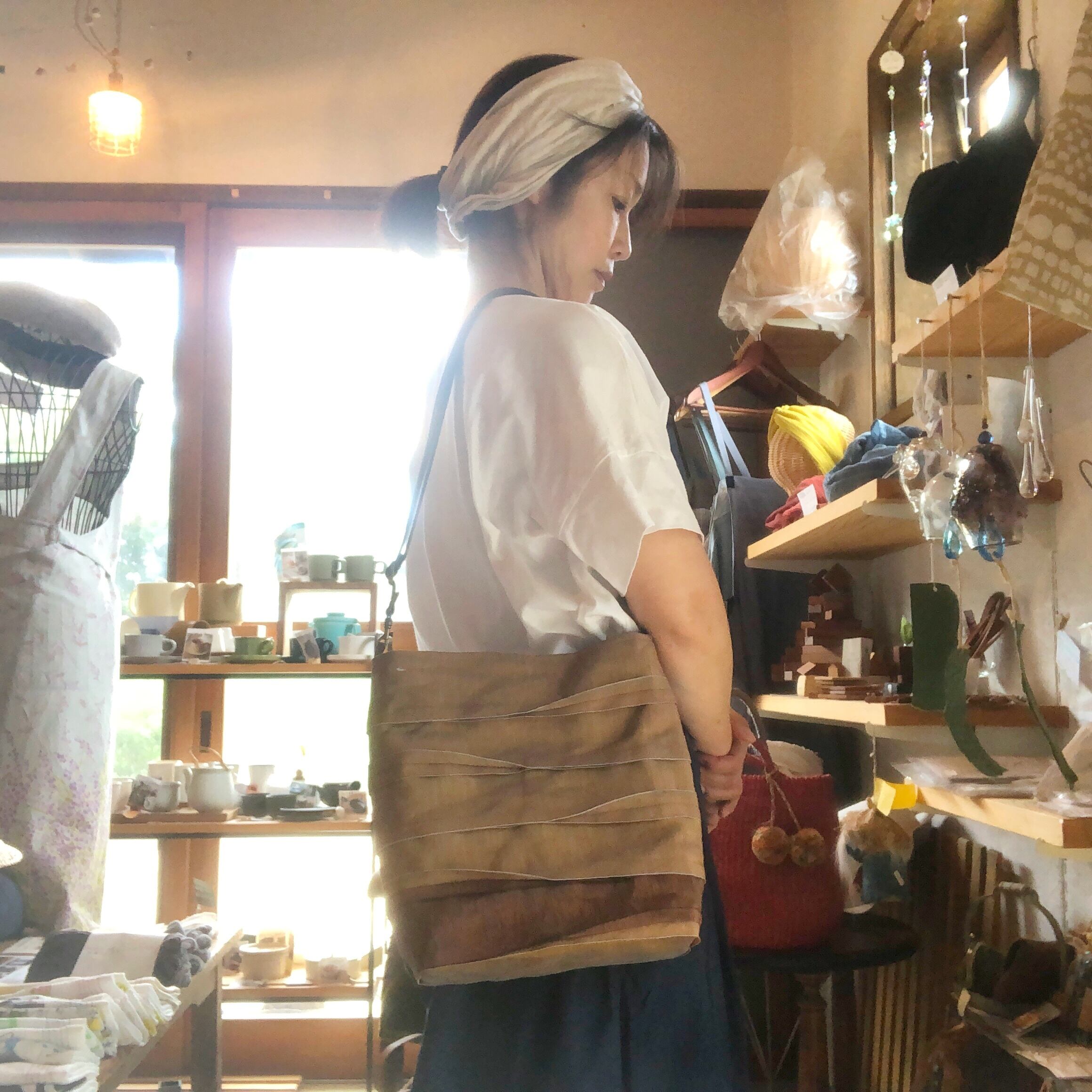 シンプルに仕上げたので日常使いにおすすめです。調節可能な肩紐をつけてますので斜めがけにもできます。