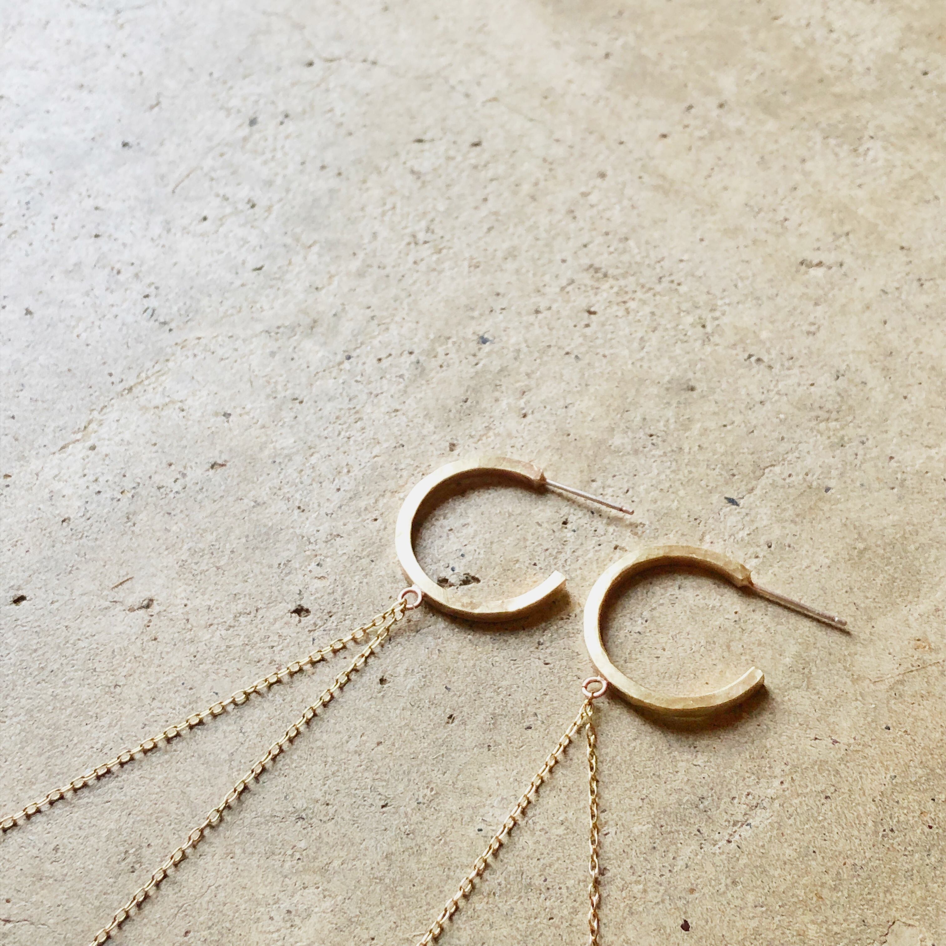 シンプルなデザインのピアスなので、どんなスタイルにも合わせやすく、長めの細チェーンが耳元で揺れるとちょっとセクシーさもある?(o^^o)