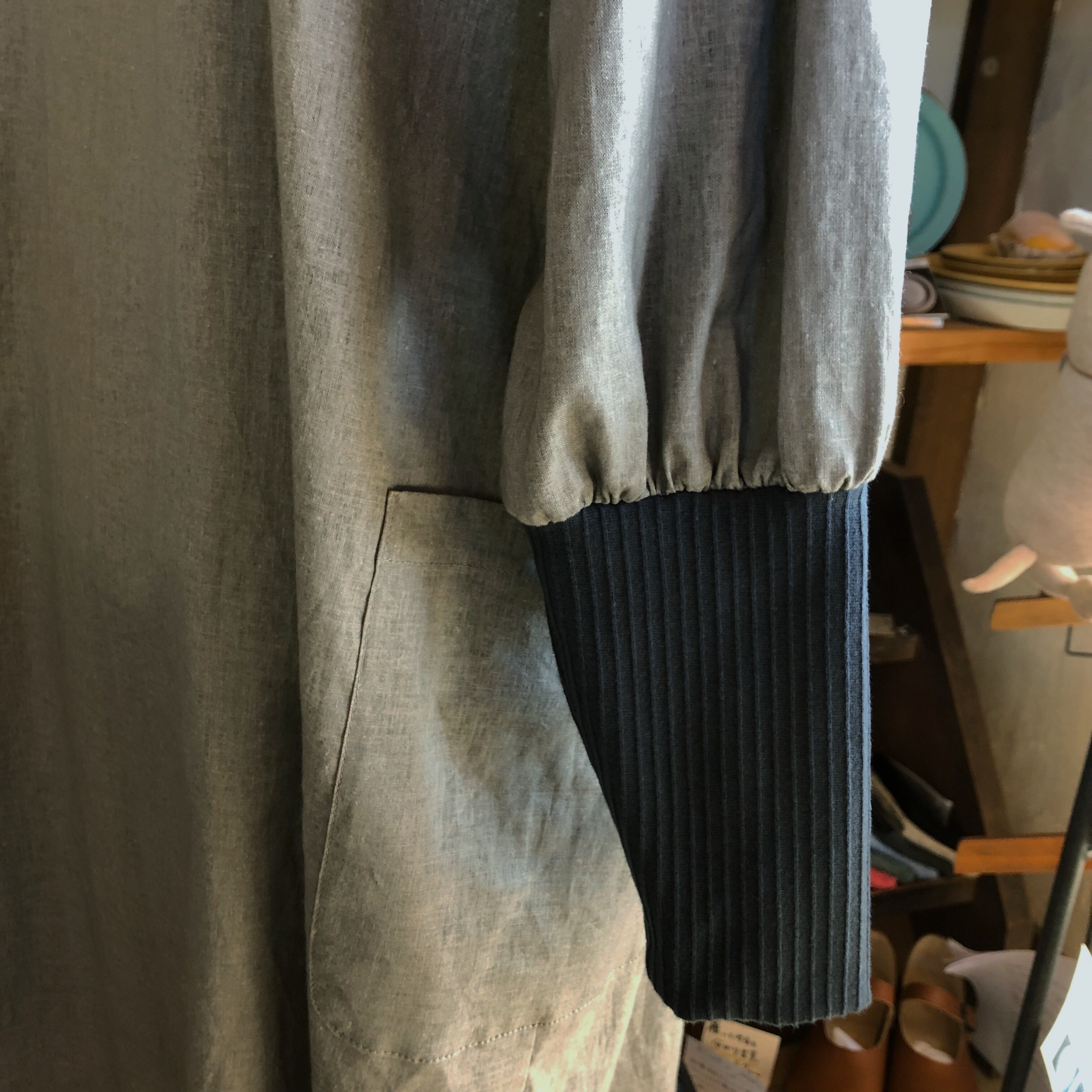 袖はゆったりとしてますが、袖口はリブニットを使い、手元をすっきりさせました。袖をまくって着ていただくと腕のあたりにボリュームが出て可愛らしくなります(^^)