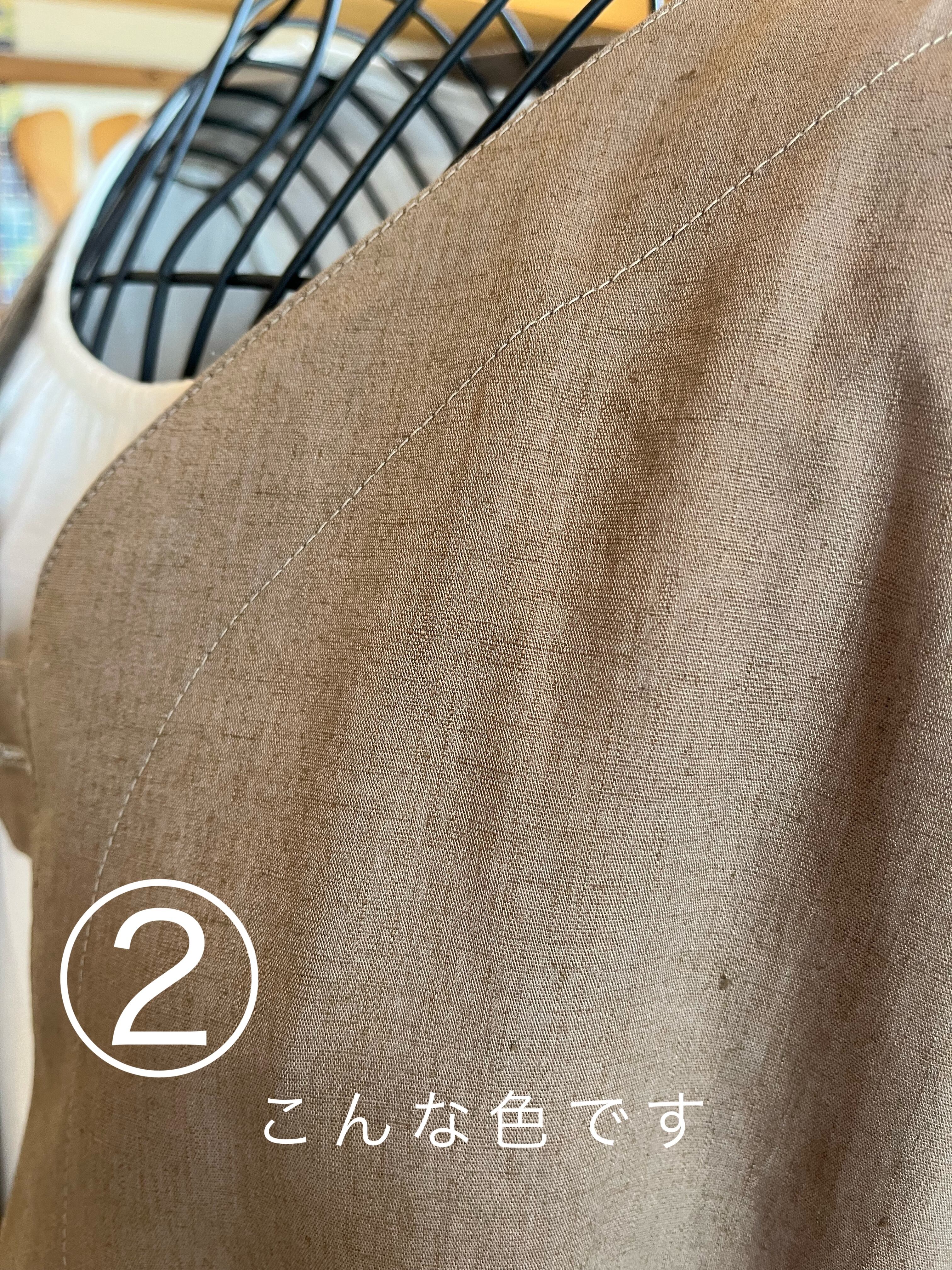 リネンにポリエルテル配合の薄手の生地を使っています。シワがつきにくく、サラリとした着心地です。